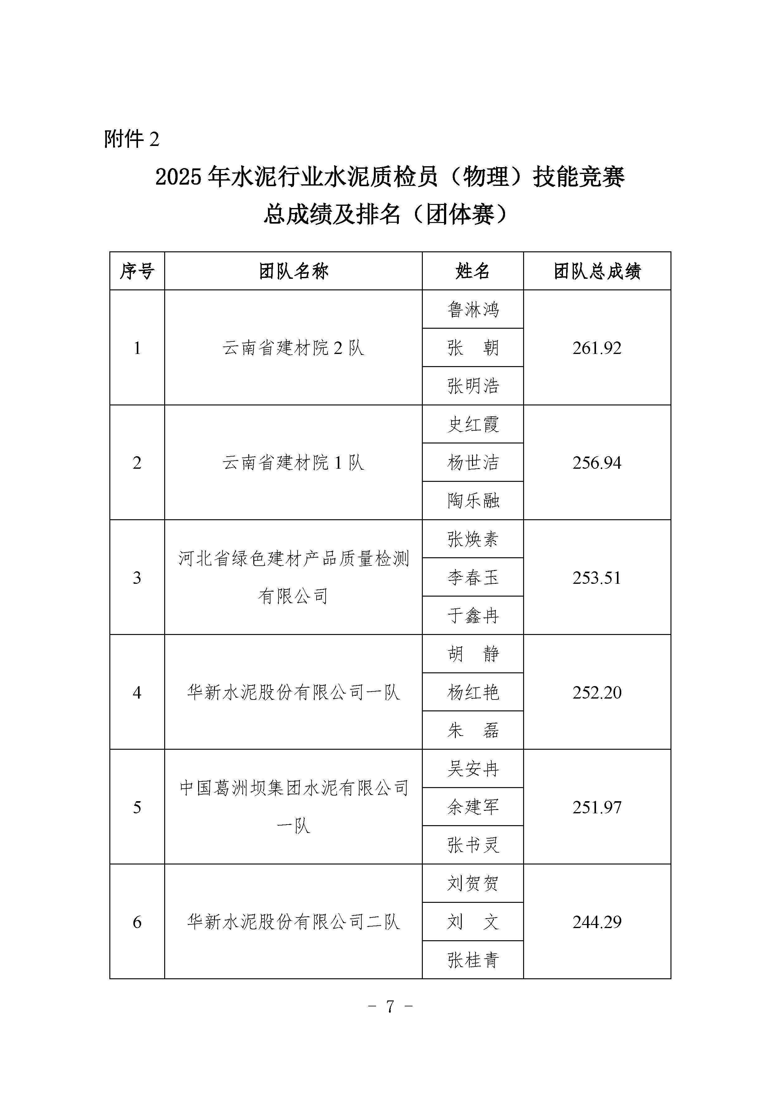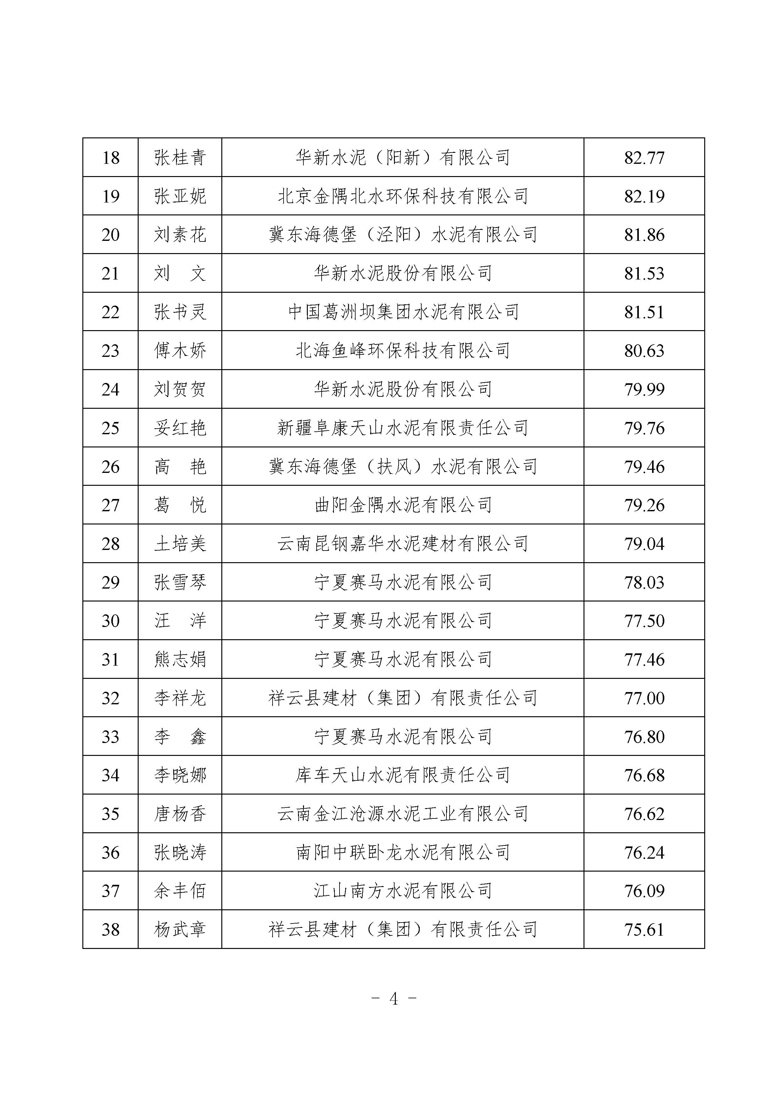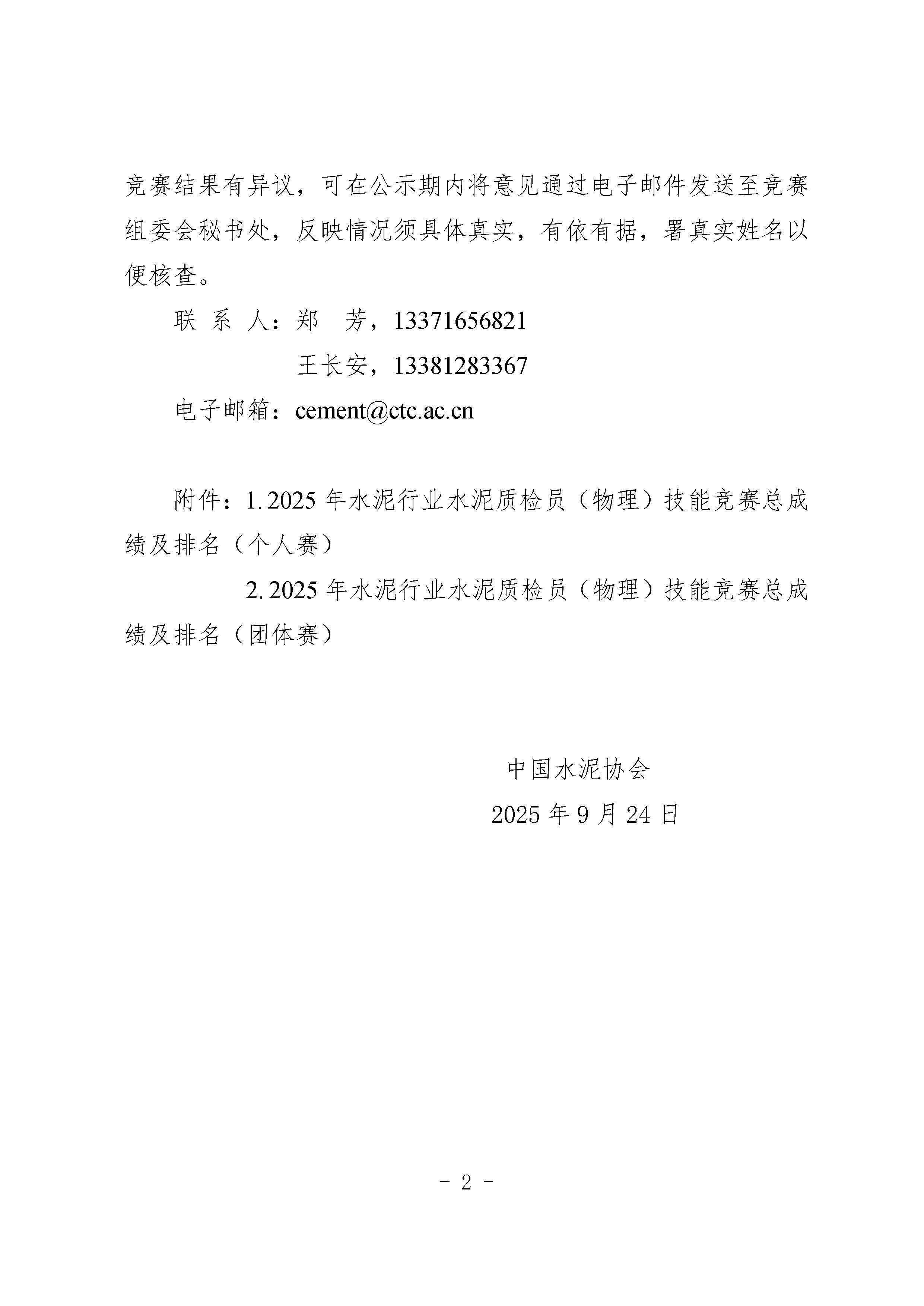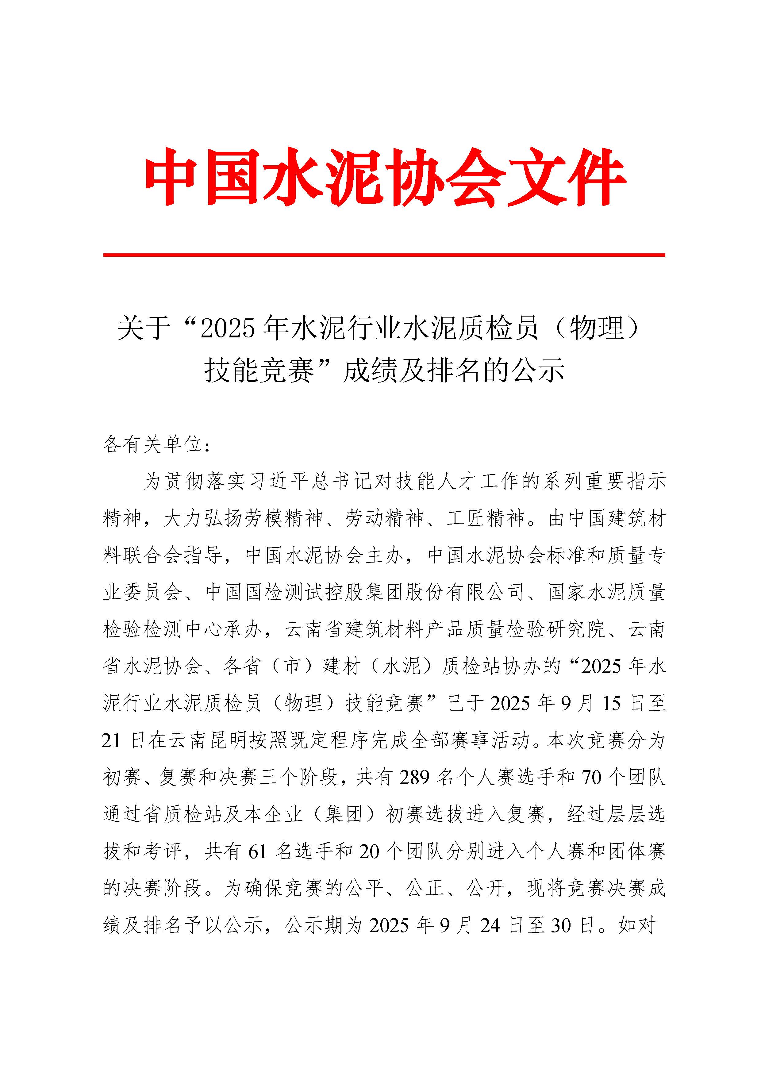 關于“2025年水泥行業水泥質檢員(物理) 技能競賽”成績及排名的公示